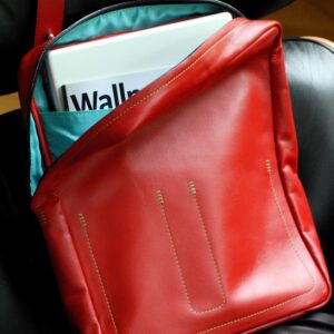 Feinstes Rindsleder. Verstellbarer Schulterriemen, Rückfach mit Griff, Innenfach und Steckfächer für Stifte, Handy, etc. – Rot, weiss, Natur – schwarz ausverkauft!!